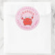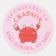 Cute red crab with hearts round return address labels template. Customize with your family's name and mailing address. Click the 'personalize' button to further customize the design if you need to shrink or increase the font size, curvature, or move items. Need help? Please send us a message (before ordering), and we can add your details and send a link to purchase.