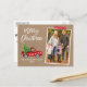 Modern Brush Script Watercolor Vintage Red Truck with Christmas Tree Merry Christmas Family Photo Postcard - Rustic Kraft Paper, Snowflake Red Craft Tape