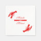 These personalized cocktail napkins feature the silhouettes of two red crawfish (lobsters) on a white background. Add your names and or special event information.