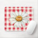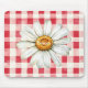 Red Cream Plaid Daisy Flower Mouse Pad