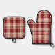Red Cream Plaid Stripes Oven Mitt & Pot Holder Set