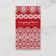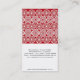 Fun, trendy, modern and retro patterned business card featuring cute, simple white lacy flowers, doily shape on a red background. Cute, girly pattern for those who love crocheting, knitting and embroidery. Elegant and gift easy to personalize with your text, name, monograme or initials.