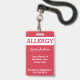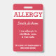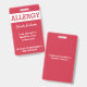 Red Custom Kids Food Allergy Alert Red Warning Badge. Attach via a lanyard, metal clip, or retractable clip to a book bag, medicine kit or for a child to wear. Customize with your allergies, contact info or emergency instructions. Edit to change font and background colours or text style. Info can be written on front or backside. www.LilAllergyAdvocates.com