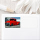 Red customized pickup truck parked in front of body shop Florida, USA.