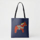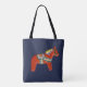 The Red Dala Horse bag design on this bag is from a wooden horse carved and painted by Julia Persson Morrill