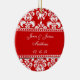 Red Damask Names Date Wedding Ornaments