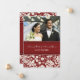 Elopement announcement photo cards in elegant red and cream off white floral damask pattern, fully customizable with your names, wedding photo and wedding details, the perfect way to announce that you have eloped to friends and family. Available in a wide range of matching wedding products.