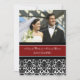 Elopement announcement photo cards in elegant red, black and white floral damask pattern, fully customizable with your names, wedding photo and wedding details, the perfect way to announce that you have eloped to friends and family. Available in a wide range of matching wedding products.