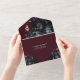 Set the stage for a hauntingly elegant event with this gothic all-in-one invitation. This luxurious floral wedding invitation features a bouquet of black and red peonies and blue berries against a red background. It is perfect for a dramatic and unforgettable celebration. They are ideal for lovers of dark romance and timeless allure.