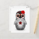 Red Day of the Dead Sugar Skull Penguin White Postcard