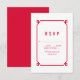 Carte RSVP simple et minimaliste Déco Chic Wedding avec une bordure ornementale d'art rouge moderne. Cette carte de réponse classique et élégante est facile à customiser avec vos détails mariages. Pour plus d'options de personnalisation, cliquez sur Personnaliser.