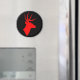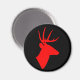 Black magnet with red deer head silhouette.
