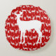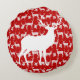 This pretty deer design round pillow is perfect for anyone who loves deer, animals, wildlife,and fun designs! Features several small rustic white deer silhouettes on a background of red with a big white silhouette doe on front, buck on back. This deer pillow is perfect for the living room, den, family room, family cabin on the lake, and of course it makes a great gift.