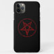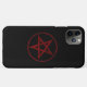 Red, inverted, textured pentagram in circle, on black background. Occult symbol. 666