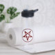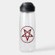 Red, inverted, textured pentagram in circle, on black background. Occult symbol. 666