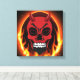 Red Devil Skull Skeleton with fire and flames art Canvas Print