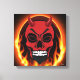 Red Devil Skull Skeleton with fire and flames background home decor. Demon canvas devil skull.
