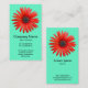 A clear stylish and attractive business card template with an attractive "Red Devil" African Daisy (Arctotis × hybrida) flower motif. Main company details on the front, with name and personal contact on the back, with the same motif and style.