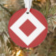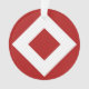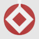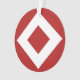 A bold geometric pattern with a red diamond in the centre surrounded by a thick white diamond border that touches the edges of the background creating four red triangles in the corners.