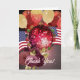 Elegant graduation thank you card, featuring a shiny red Disco Ball with colourful Graduation Hats, the American flag, Glitter Balloons and Red English Roses. Add your photo inside the card and customize the message.