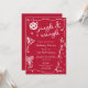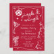 Red Disco Martini Jingle & Mingle Christmas Holiday Party Invitation - Celebrate the season with this retro inspired, quirky, hand drawn and handwritten groovy Christmas party invite. Featuring a vibrant monochrome red and while colour palette, classic Christmas colours. Quirky and funky party icons like a disco ball, dirty martini with two olives, wine or champagne glass with coquette bow, line art Christmas pine tree and twinkling stars make this a fun and festive holiday party invitation. Customize this editable Christmas party invitation template with your own event details. Available in print or as a digital template, easily send it via text email or social media for an eco-friendly option.
