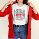 Bold letters spell out the word "LACROSSE" with the "O" replaced by a basket. The slightly distressed design makes a great personalized gift for a player, coach, team or fan. Available in red, orange, yellow, purple, green, blue, grey, black, forest green, navy, maroon, burnt orange, gold and powder blue. Matching products available.
