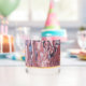 Whiskey glass that features the photo image of the colourful patterns of a slab of red dolomite mineral stone. Image printed on one side of glass. Order singly or in sets of two or more for when entertaining guests. Makes a great gift for the rock and mineral collector!