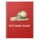 Red Don't Squish Snails Design, with a white / yellow coloured snail and the words 'Don't Squish Snails"
