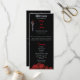 A red dragon on a sword and red roses against a backdrop of black wedding program