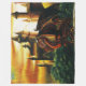 A side profile of a majestic red dragon perched on the edge of a rugged cliff, it is silhouetted against a sunset sky. Behind the dragon is a castle. The warm hues of the setting sun bathe the scene in rich oranges, yellows and reds.