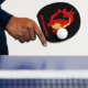 This red dragon design ping pong bat, or table tennis racket, can be customised with any text. The paddle is laminated wooden with a choice of a EVA on one side for graphic printing and a 2 ply "pips in" rubber face on the other or EVA on both sides for graphic images. Players select bats based on their playing style, considering the blade's materials for speed and power, the sponge's thickness for control, and the rubber's tackiness for spin. Should you require any help with customising then contact us through the message link on this page. Dragon design table tennis bat.
