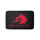 Red dragon head design unique bath mat for home. Fantasy beast head logo with horns, spitting fire flames. Personalize with your own name or quote. Great for Chinese New Year.