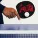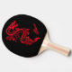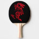 Custom ping pong paddle done in black, with graphics of a red Chinese style dragon, on both sides. Personalize the red text to read what you want. Makes a great gift idea.