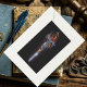 A small red dragon perches atop a gleaming fantasy sword mounted against a black wall. The dragon’s tail coils gracefully down the length of the blade, drawing the eye with its fluid motion and subtle menace. The sword itself emits a soft, ethereal glow