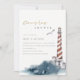 RED DUSKY BLUE LIGHTHOUSE SEA COUPLE SHOWER INVITE