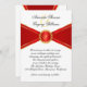 This lovely design features a red and gold geometric band with an elegant monogram medallion It's a wonderful choice for fall or winter weddings. Edit any of the information shown in the design template with your wedding details. You can change the wording to suit your preferences and needs. Be sure to edit the monogram on both sides of the invitation. You can change fonts if you like and re-position the monogram to centre it to your liking.