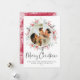 Red Elegant Botanical Wreath Christmas Script Holiday Card