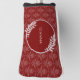 Protect your golf clubs with this unique Red Elegant Damask Personalized Golf Head Cover. Cover design features an elegant damask background and space to add your name adorned with delicate foliage. Additional gift items available with this design as well as a variety of colours.