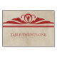 Stylish and chic Elegant Deco Wedding Table Card featuring a pair of art deco swirl flourish borders in dark red and a vintage textured look background in a soft beige. This table card has rustic charm while maintaining a lovely sophisticated flair. Absolutely perfect for an art deco 1920's vintage themed wedding. Easy to customize, simply add the appropriate table number(s) in the text field provided. Click "Customize It" to find additional personalization options.
