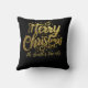 This simple and stylish holiday pillow features a stunning faux gold script typography that says "Merry Christmas" on a black background.