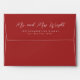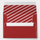 Red envelope with return address. Striped inside for an extra special touch.