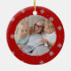 Red elegant snowflakes and dots custom photo ceramic ornament