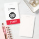 Easily personalize this Custom Administrative professional Name Badge without photo, with Scan Qr Code and large business logo. A simple business design in eyecatching red and white colours fully customizable in front and back sizes, sans-serif basic and modern fonts and a professional and clear look, perfect for small business employee, boss, guests. These business id badges supplies are avaiable with lanyard, metal clip or with retractable. No minimum order, but save money and enjoy Zazzle discounts by multiple orders!