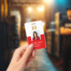 Red employee photo ID company security Badge