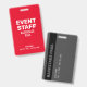 Red Event Staff Backstage Pass ID Badge. A personalized badge with an editable template for special events. Can be used by employees as an access pass or stage pass. Check out the rest of the collection for other design variations.