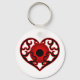 Cute and strange elegant swirly heart with a weird red eyeball in it and red trim on a cute key chain.