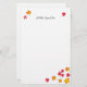 Pretty fall stationery with custom text. Red and yellow leaves decorate the edges of blank, white note paper. "A note from... name" is black, script text and can be changed to anything, or deleted.