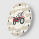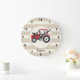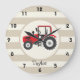 Red Farm Tractor on Tan Stripes Large Clock