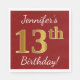 Red, Faux Gold 13th Birthday + Custom Name Napkin