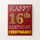 Red, Faux Gold 16th Birthday + Custom Name Puzzle